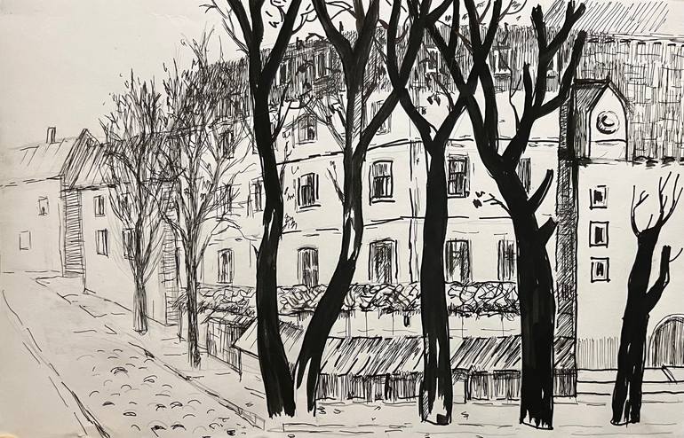 Paris Architecture cityscape, old houses French, ink drawing Drawing