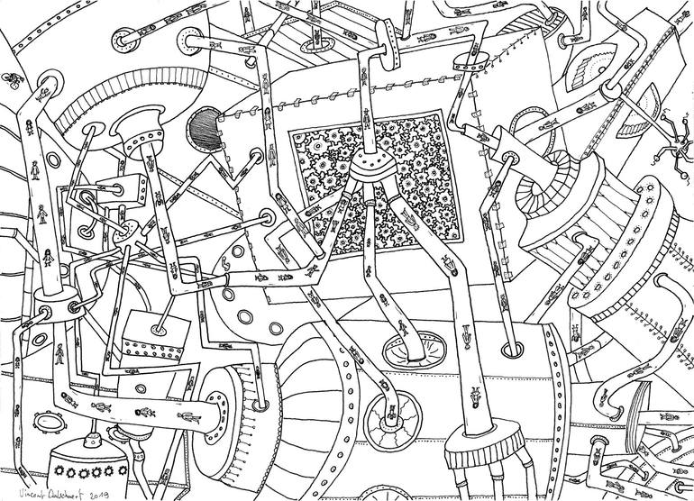 Bowie's Life on Mars or TinTin’s Explorers on the Moon, that's probably the places Vincent Dalschaert comes from, cause he is only accidentally born in Bruxelles IN 1958, living in Milan. Bassoon, cello, Double Bass and Bass Guitar, along with Paint Brushes, Pencils and Fountain Pens in his hands , for expressing his mind and heart.