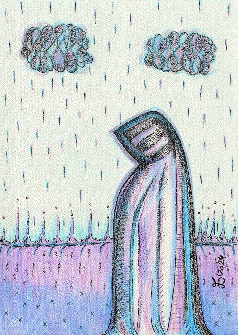 Pilgrim. Fine art drawing by Ewa Dura. Markers and aquarelle crayons on paper 300 g/m2, size A4 (21 x 29,7 cm). Artistic drawing on white background. The drawing is sold with a certificate of authenticity - signed and dated by the Author. Please note! The artwork will be delivered unframed. A se...