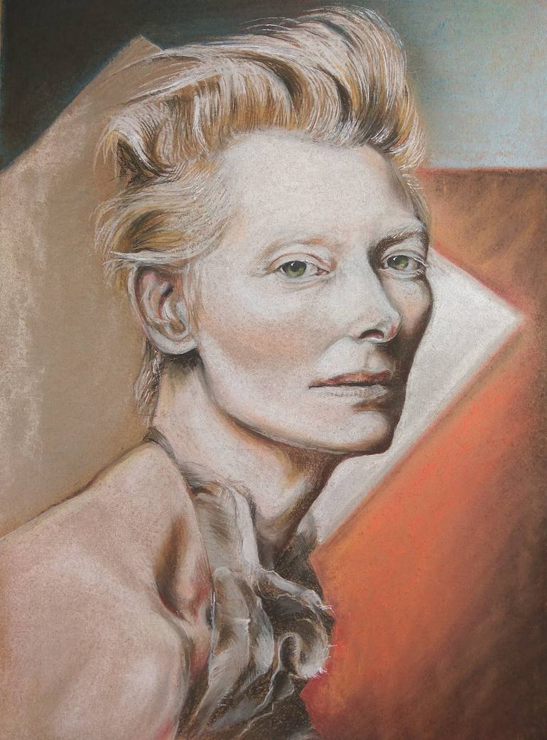 Portrait of Tilda Swinton. Pastel paper 20 * 30cm, pastel. I was inspired by the unusual appearance of this actress and her many images from the films. She is beautiful, so it was impossible to refrain from drawing her.