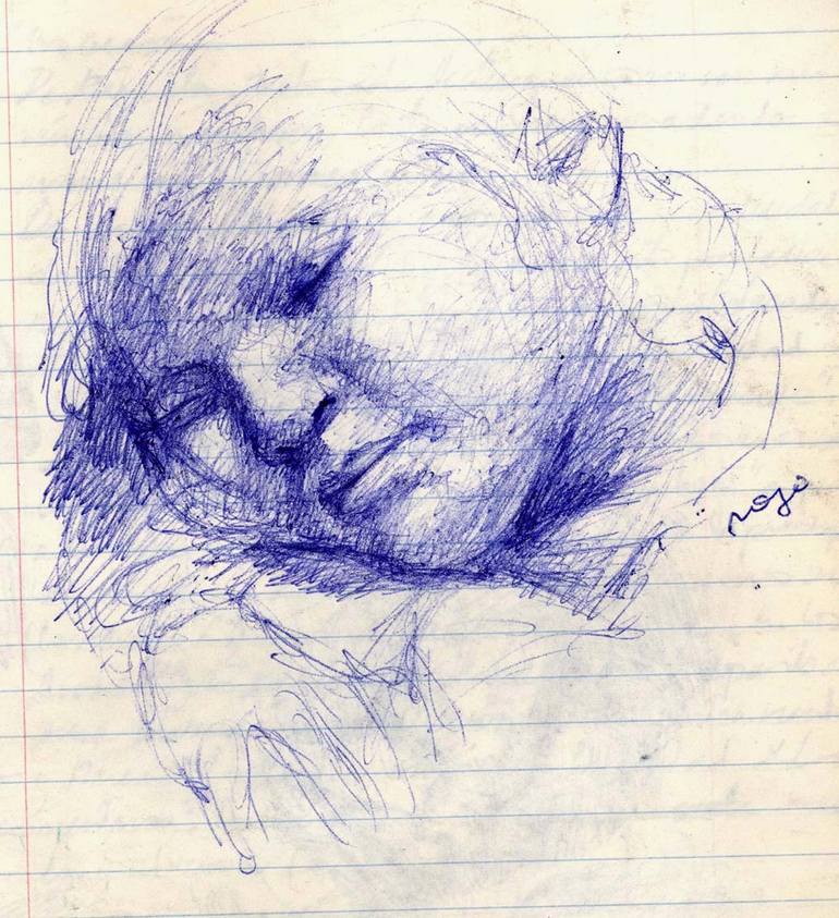 I made a quick drawing of my cousin while she felt asleep watching TV in our grandmother's house, next to her older sister.