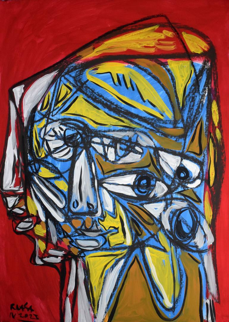 Roman Lasa, Portrait, pastel/acrylic/gouache on paper, 70x50, 2023