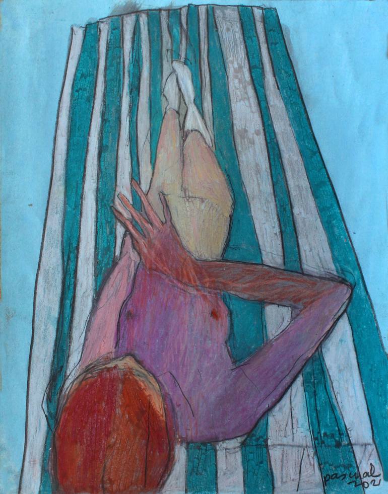 Hi, I'm an artist from Barcelona. My drawings serve as a visual diary of everyday life. After spending twelve years in the UK, primarily in London, I relocated to Copenhagen in 2023, where I currently live and work. Through my intimate drawings, I capture the quiet beauty of ordinary moments, depicting scenes of friends hanging out, messy kitchens, laundry baskets, and fleeting gestures—experiences in which the familiar reveals something unexpectedly vibrant. A recurring theme in my work is the presence of the human figure, especially women, depicted in introspective, intimate interior spaces. The interiors and figures often appear distorted, as if the image has been pulled from a corner, showcasing elastic, angular curvatures and specific focal points. These contemporary domestic spaces feature hallucinatory, elongated visual elements, creating an atmosphere of unreality. The characters inhabit a certain dreamy state, as if trapped in a transition within spaces characterized by penetrating perspectives and subdued, pale, yet colorful tones. My drawings are deeply expressive, emphasising the emotional and psychological aspects of the characters, where vigorous, rough black lines mingle with delicate, subtle moments. I work from both observation and memory, paying attention to small details that allow each line to convey the warmth of a lived moment. I primarily use coloured pencils and acrylics. Thank you for visiting and engaging with my work! I have participated in several Group Shows in London, Berlin and Barcelona. He has also been selected for various art prizes and competitions, including the Barcelona Ynglada-Guillot Drawing Prize (2007), the London VIA Art Prize (2020), the London Trinity Buoy Drawing Prize in 2021 and 2023, and the Berlin Fresh Legs (2022) organised by the Gallery Heike Arndt. Additionally, he has exhibited in Newcastle, UK, at The Biscuit Factory and in Møn, Denmark, at Liza's Gallery (2025).