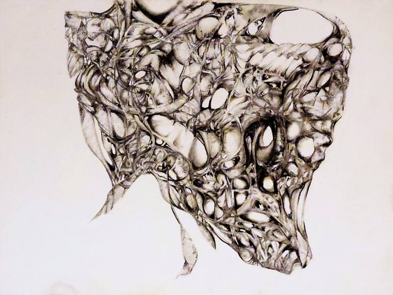 Prehistoric Bird Encased In Living Cocoon is one of several drawings in the encased in living cocoon series. In this example the host is a prehistoric creature of some sort with a bony head and a beak or snout of some sort. When looking at it sometimes it can appear as a beautifully ornate and power...