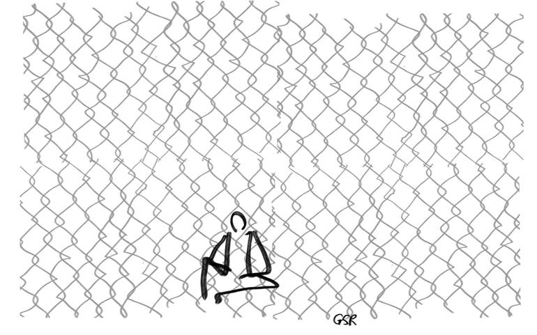 Prisoners - a minimalist study in ink on paper; fence