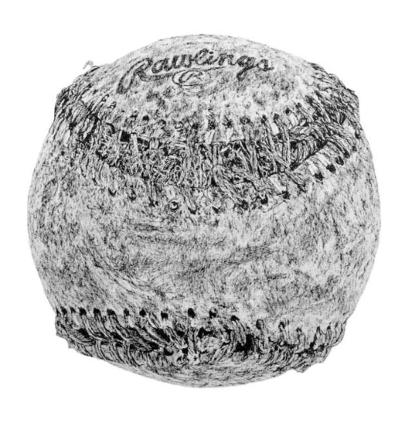 An old Rawlings baseball (that's been around the bases a few times). Pen on paper 9 x 12" 300lb paper Archival and fade proof ink