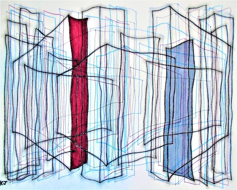 Red and Grey Verticals Drawing