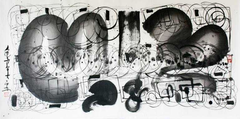 Maomeii Be. (b. 1975) is a Canadian/Algerian Artist based in Calgary. Classically trained in traditional Arabic calligraphy and Art, his desire to know more about the way in which the written form is expressed in different cultures led him to travel and study with renewed masters. To better express himself, he broke from the tradition and introduced other elements, particularly on his work in large sizes. Maomeii has adopted the journey of spontaneous and abstract style, which involves the informal movement and creativity. His Cognitive calligraphy artwork takes shape through drawings and paintings which are based on classical calligraphic styles and techniques, but that simultaneously break the rules to create an alternative idiom through his own subjective expression to work in a more free-form improvisational style. Researching culture, Asian history, philosophy, storytelling, and martial arts have always been a constant influence to Maomeii and his contemporary Chinese-Arabic fusion and abstract works, where he combines elements of traditional Asian ink painting, Arabic calligraphy, and modern art. In this fusion, Maomeii's style beautifully incorporates the flowing lines of Chinese calligraphy and the larger planes of abstract expressionism as seen in the Western painting. With this multi-cultural dimension, he aims to reach out to the spiritual and material status of people. © Rhythms of calligraphy™