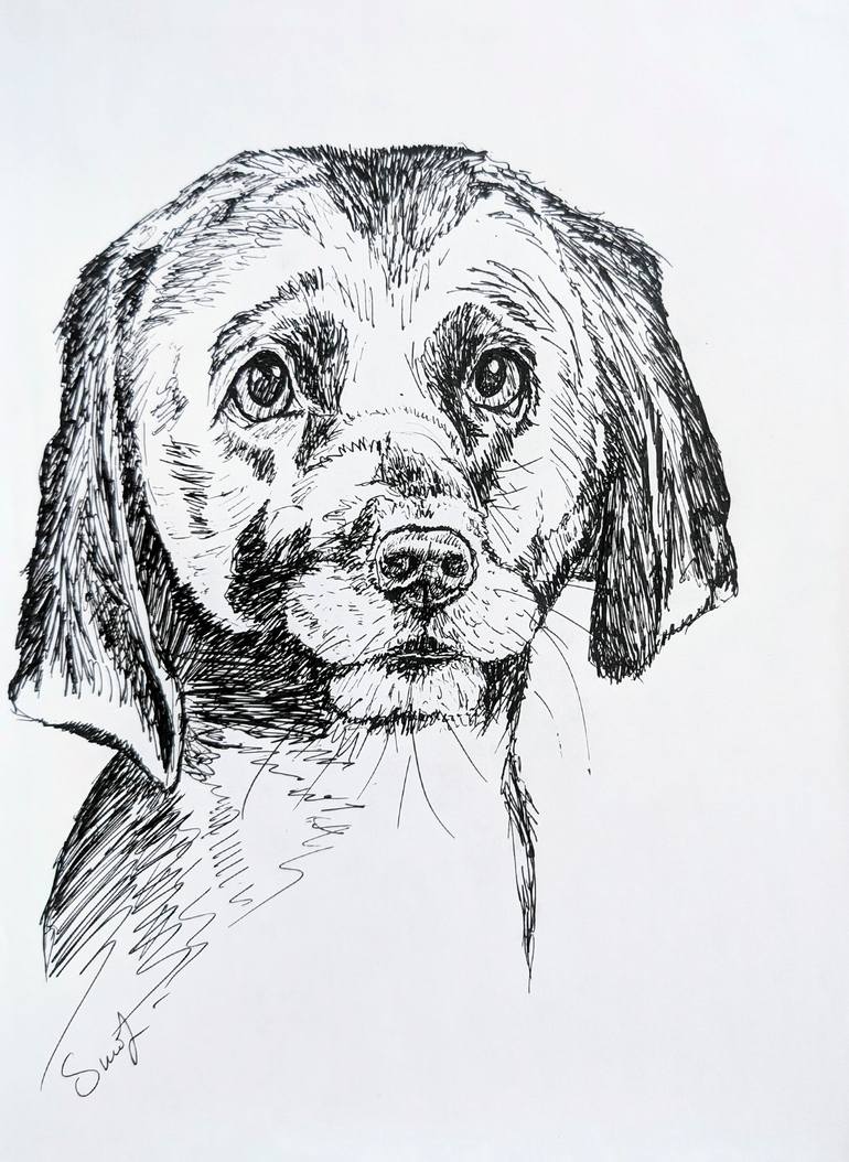 "Sad Dog's Gaze" is a drawing created with a gel pen on paper. The work is detailed with fine lines, capturing the depth of the dog's emotions. The eyes are the central element of the composition, expressing sadness, longing, and perhaps a glimmer of hope. This gaze reaches straight into the heart, ...