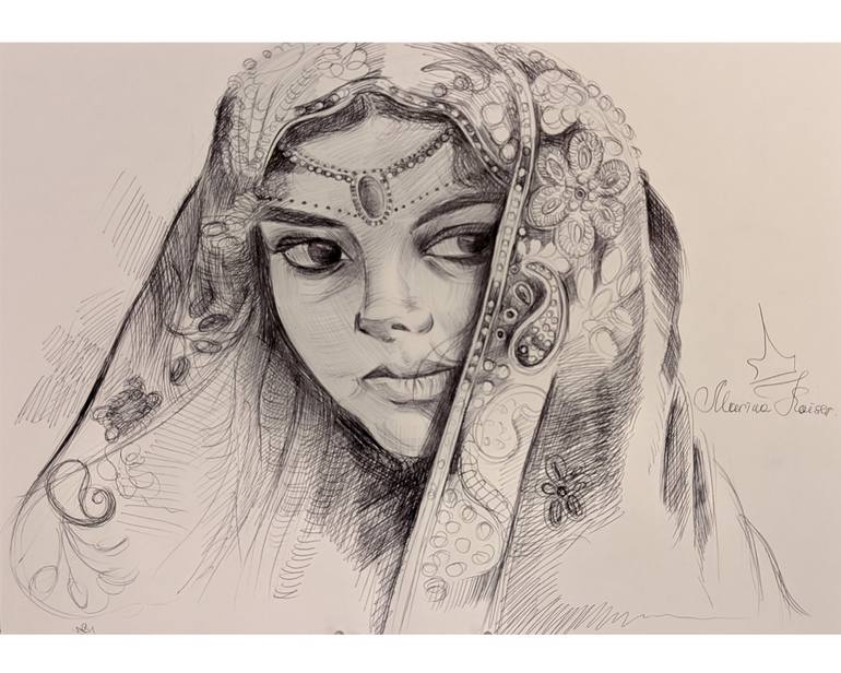 Sahara I love to work in graphics, it is in this technique, when there is a lack of detail, minimalism in the midst of many details, some incompleteness, mystery ... Mystery is not only in the drawing, but also in the culture of this girl, it brings a breeze of hot and powerful, endless desert, mira...