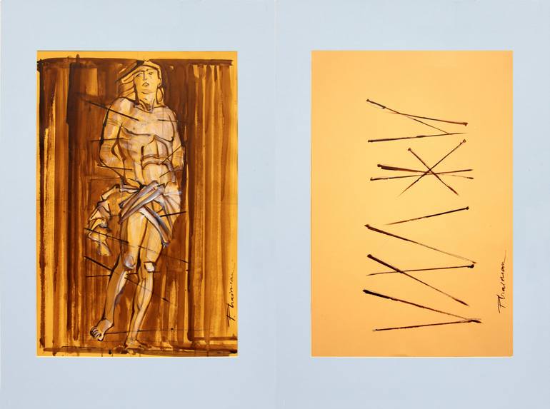 Inspired by the martyrdom of Saint Sebastian. Diptych made of 2 separate drawings, one representing the saint and the other representing the arrows. Shown in mat, as a suggestion. Each drawing measures 70x50cm / 27.5x 19.5in. Shipped rolled in a tube for fast and less expensive shipping. Can be s...