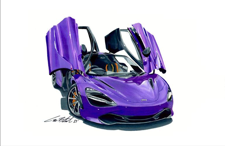 -Say hello to Scarlet Runner. This is the McLaren 720s ( ORIGINAL ) Drawing - Each piece is hand drawn using a graphite pencil with special techniques for perfection followed by a combination of unique alcohol markers and colored pencils carefully blended with detail. - Each piece is given a name b...
