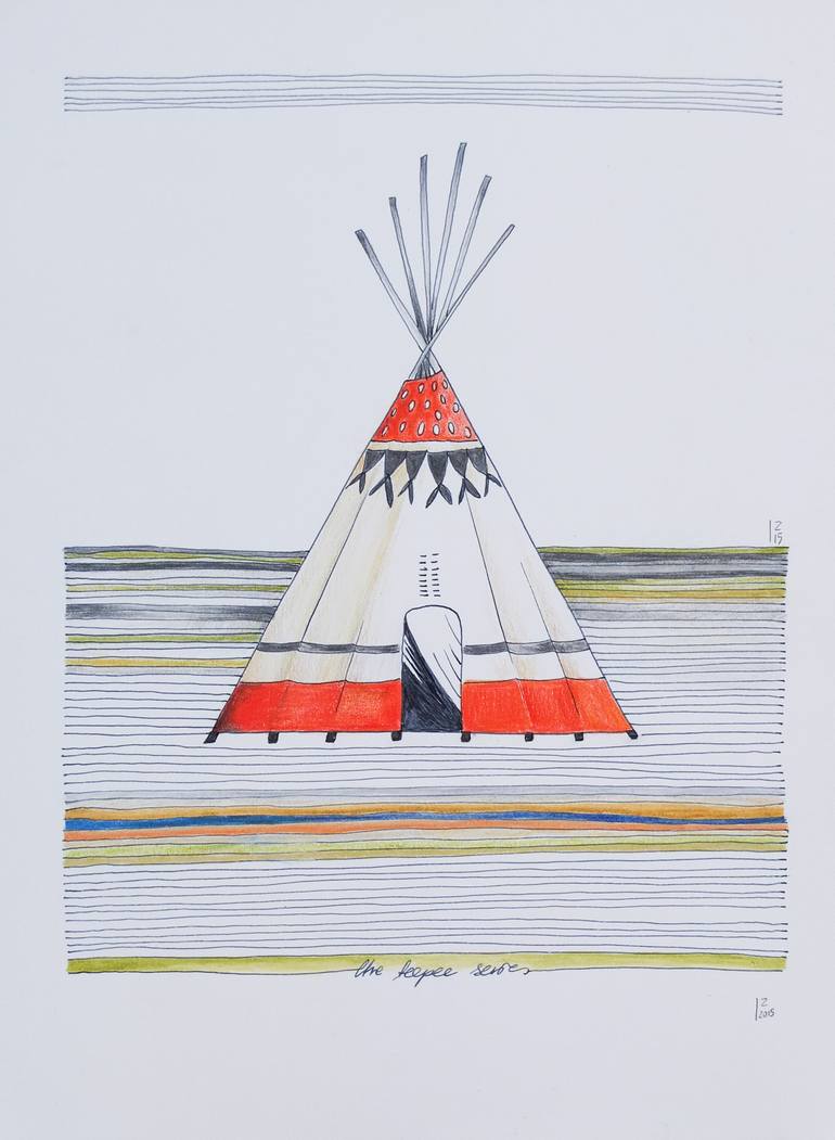 Red Teepee. Several more are available in the series. Dimensions - please note the whole paper is 12 x 9 inches. The drawing itself is 7.5 x 9.5 inches Drawing on smooth, white paper. Ink, fountain pen and pencils.