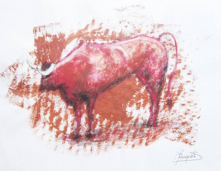 A standing bull. Bulls have always been in the History of Art depicted as symbols of prosperity, fertility and good luck.