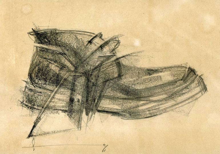 "Sketch 197", 2025. Paper, graphite, coffee, fixation with varnish. 21x30 cm.