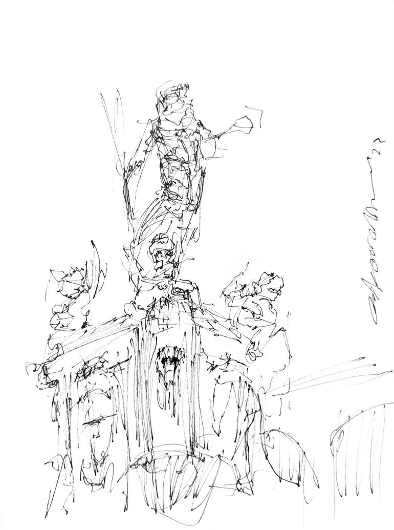 Sketch of Netune Fountain on paper with a marker in Bologna, Italy