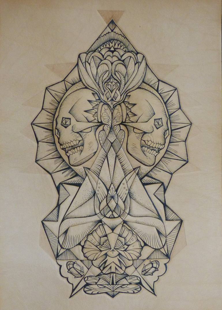 TATTOOED LEATHER ART. Size: Leather art is 29cm x 22cm. Can be supplied in frame for additional cost. Please enquire & review Skull & moth for styles. Limited Edition. 1 of 2 Creation: This is an original piece of inked art. No two pieces will be the same. Each one is unique and original and c...