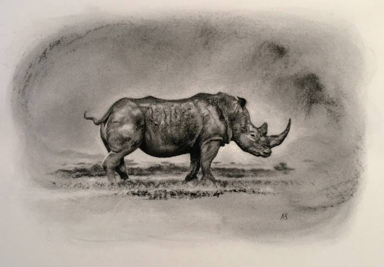 Charcoal drawing of a Southern White Rhinoceros. This drawing will be part of a series of animal portraits. The ancient anatomy of the Rhinoceros fascinates me. Like a remnant of life before the last major extinction event, 65 million years ago. We are currently well into the sixth, and the Souther...