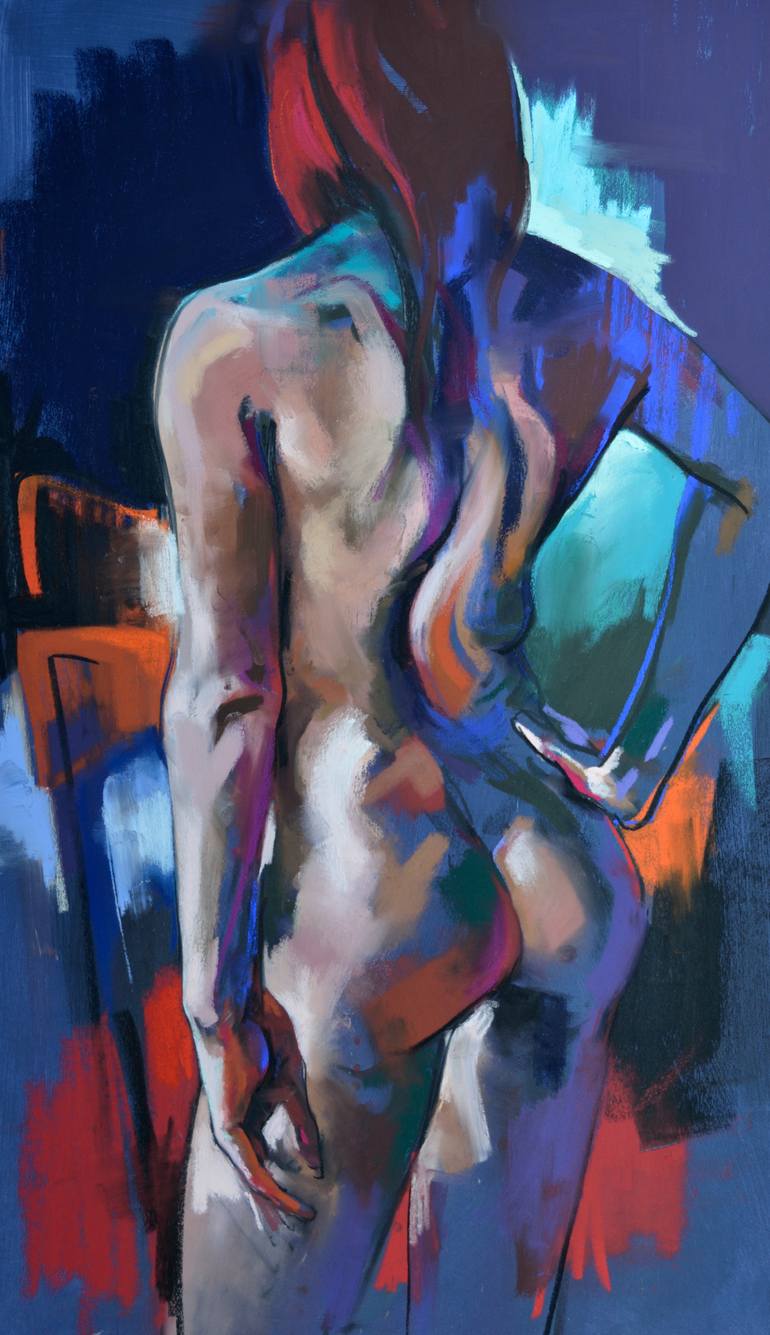 Born in Edinburgh in 1953. I have always had a passion for art in all its forms and have been fortunate to be able to make a living from doing what I love. My paintings start from the position and gesture of the human form, and the use of strong light creates anabstract quality which breaks from the obvious, preconceived concept of what the human figure looks like.The light adds solidity and weight to the figures, who portray an inner strength within their self-contained,introverted positions.The idea of a seductive, reclining nude is not relevant to the women and men who I meet in real life. Theyare intelligent, thinking people highly capable of reaching their own and individual conclusions about life. Theposes in these works are derived to some extent from the bending figures of Degas, who remains one of mygreatest influences. They echo a reality of a figure in tension. Tension being a part of all of our existences.The poses make interesting designs across the canvas which, along with the shapes created by the directlight, form a composition that echoes the transience of tension and balance within our lives.