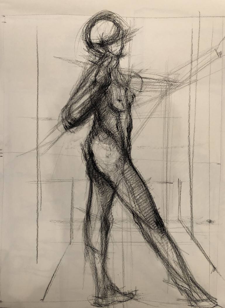 I was inspired by the sculptures and sketchy or linear paintings of Alberto Giacometti
