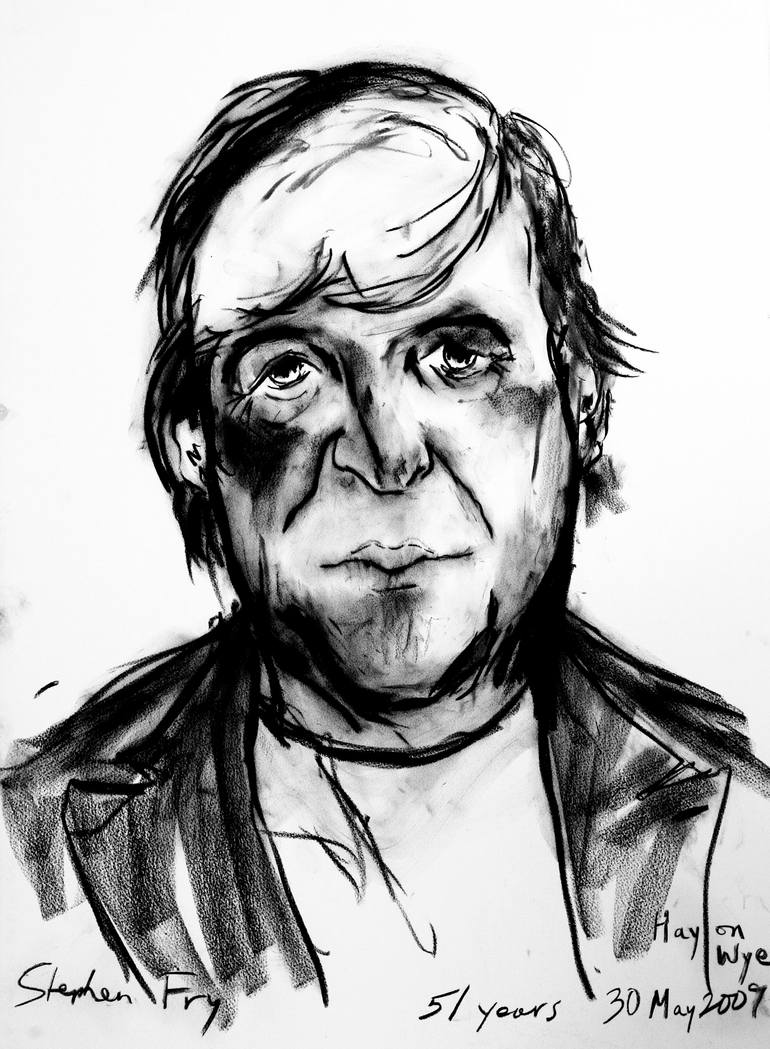 I met Stephen Fry at the Hay on Wye Literary Festival in 2009. I asked him if he would sit for a portrait. I had overheard him say in the Green Room, that he was giving no interviews to journalists. So it was a real pleasure that he agreed to sit for me. Well as the portrait progressed he started m...