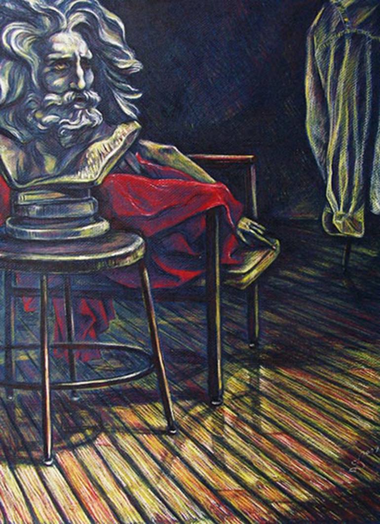 This color pencil drawing is from an art studio course at Grand Rapids Community College.