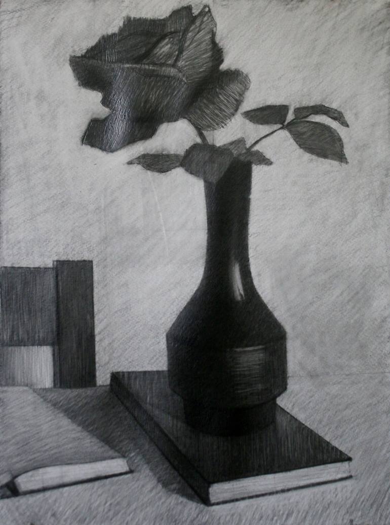 I have a big rose bush in my garden. Every year when it blooms, there is something indescribable ... every day I pick some flowers that inspire me deeply. The rose is a common subject in my paintings and drawings.