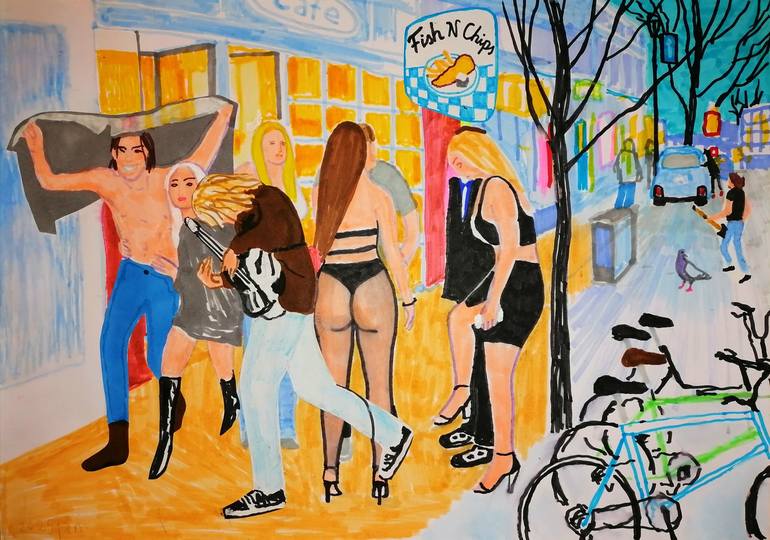 Hello, I'm inspired by people, cities, streets, their colours and their crowds, I wouldn't want to be a minimalist, I like when there are a lot of details, when there's a story, yes, I'm probably more story teller .From 2021 till the 2024 I have created about 250 drawings in this technique, all in one size, this is my drawing style, I will try to publish some of them here, and hopefully ,some collector might be interested, because then it would inspire me to continue this thing. They dont allow to put here email or social media contacts,but my email you can find in google, also in facebook))
