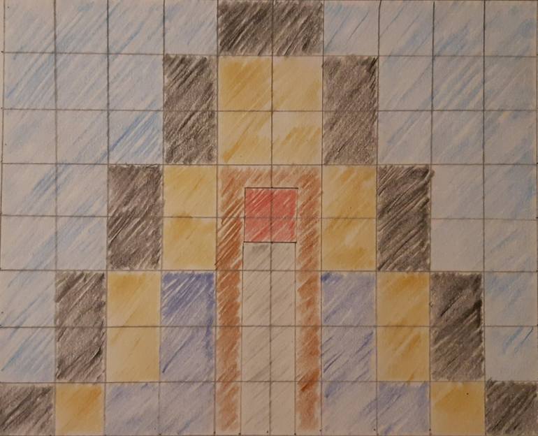 Study for World Mountain/Hindu Temple Massive on the outside - corridor (silver vertical strip) leads to a small inner chamber (red square).
