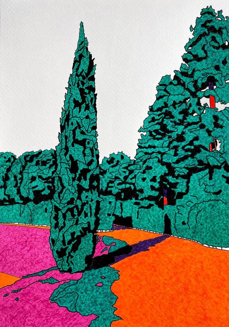 This is a representation of a sunny afternoon at the Boboli Gardens. It was the beginning of fall. The majority of the trees were very green and it was very warm. These were things very surprising to me since I’m coming from Canada where fall is very cold and the trees change their colours very earl...