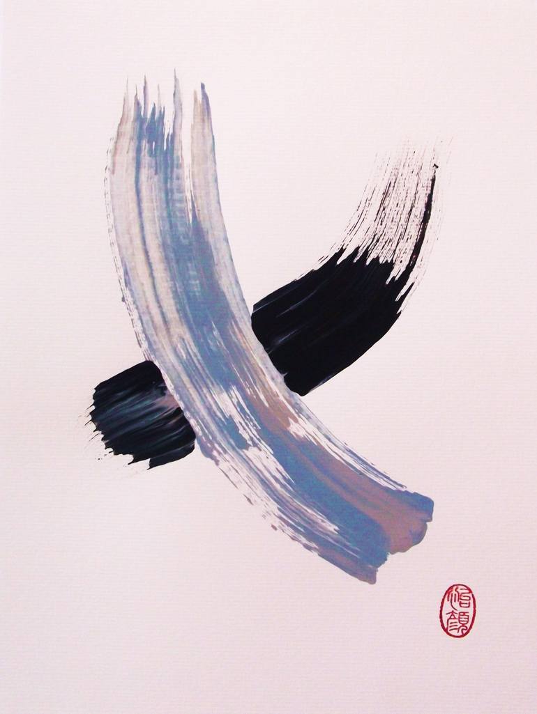 Original on Canson 120 lb paper. Brush/Ink/acrylic. Sumi-e, minimalist. ( two stroke ).