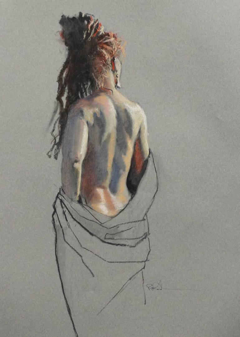 One of my favorite models has a beautiful back and a magnificent head of hair arranged in dreadlocks. She has great strength of body and character and that is what I was trying to get in this artwork. This was done from life in one 2-hour mad dash.