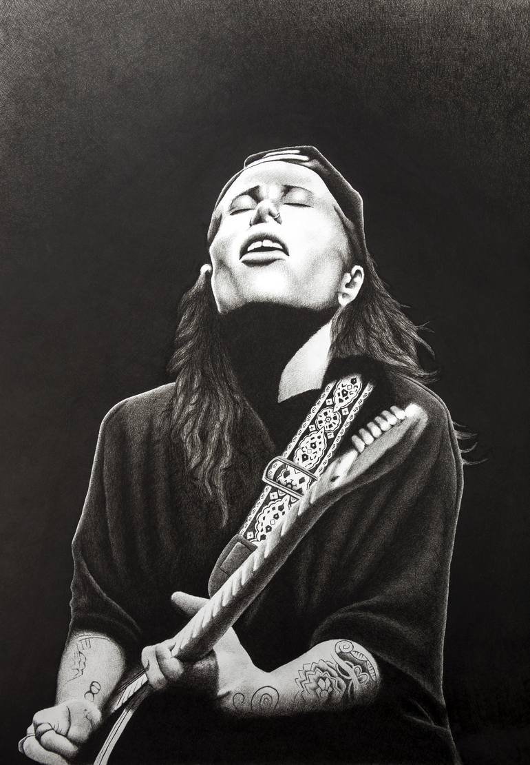 Sydney artist Dean Spinks often recognised for his unique crosshatching technique using fine-point black markers. Painstakingly slow, the gradual process of layering small lines creates a deep, dramatic and detailed artwork.