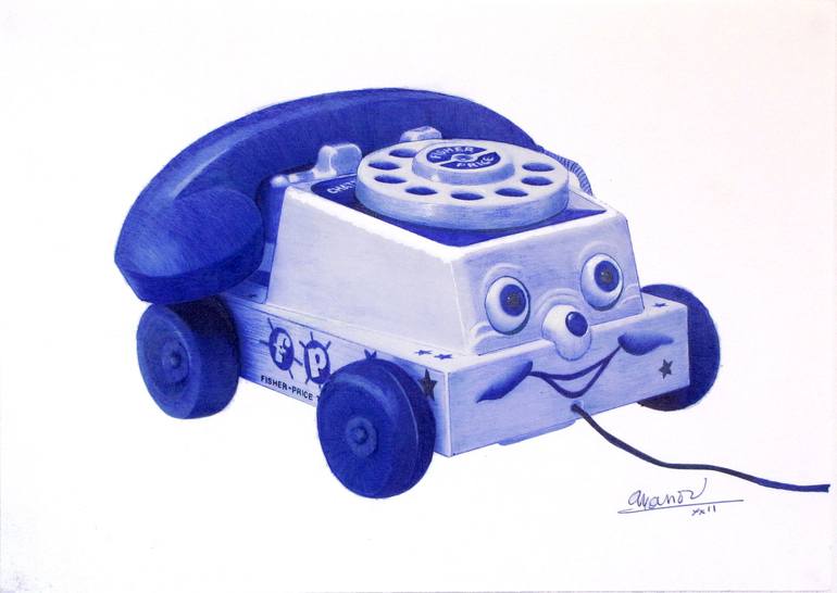 Dessin au stylo bille sur papier d'art 210 gr du téléphone Fisher Price