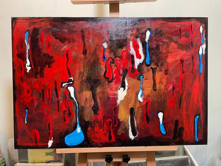 Inspired by primitive cave paintings sex temptation surreallism abstract acrylic