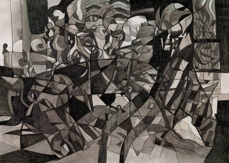 Inspired by the surrealist’s automatic drawing technique and the Cubist's multi-faceted approach to representing reality, these ‘compression drawings’ were developed as an experiment to represent moving images into one static image. Short excerpts taken from movies are drawn several times on the sa...