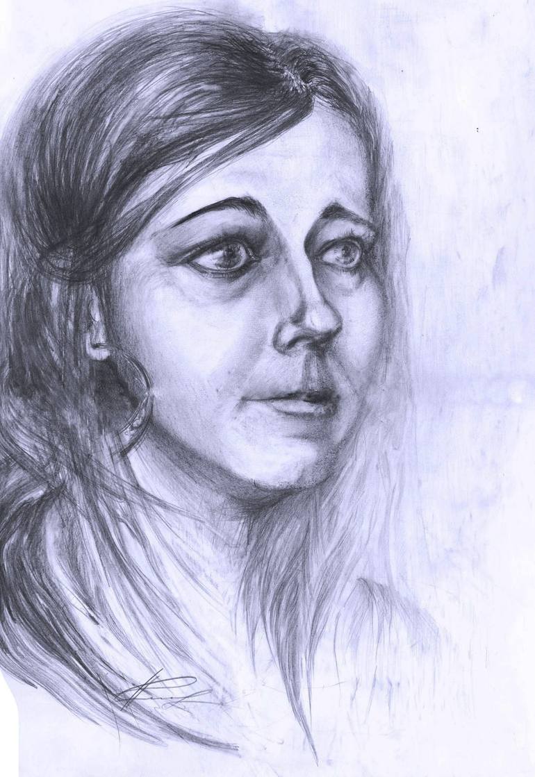 The Gypsy Girl. Portrait of a young girl. Paper. Pencil.