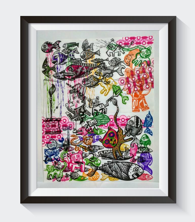 Art Work ( Lowbrow Drawing Series ) " The Ontemporary Art… The Master Off " Drawing, Color on Paper ( Spidol, 80 gram ) Uk. 42cm X 33cm ( 2 Paper Panel in 1)