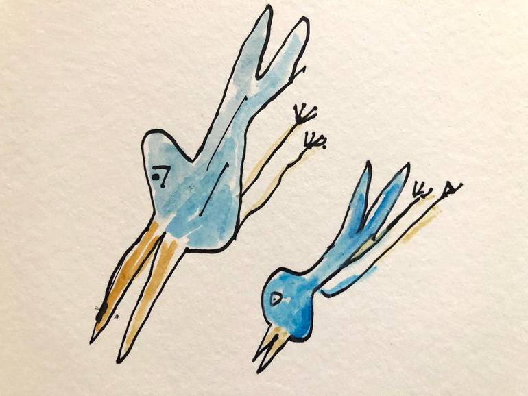 Part of a series of animal drawings that my children enjoy. May be appropriate for a different and original slant to nursery decor. Ink drawing on high quality heavy paper, hand water colored, signed and dated.