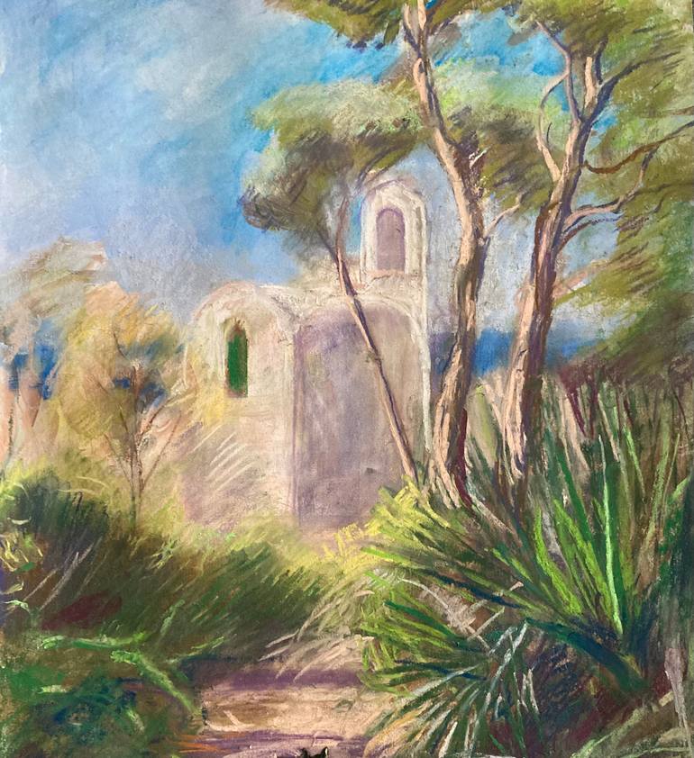 A recent holiday inspired this pastel drawing of an abandoned villa on capri
