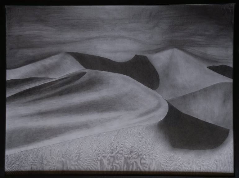A2 size pencil and charcoal drawing. Framed with glass, but the frame carries a defect.
