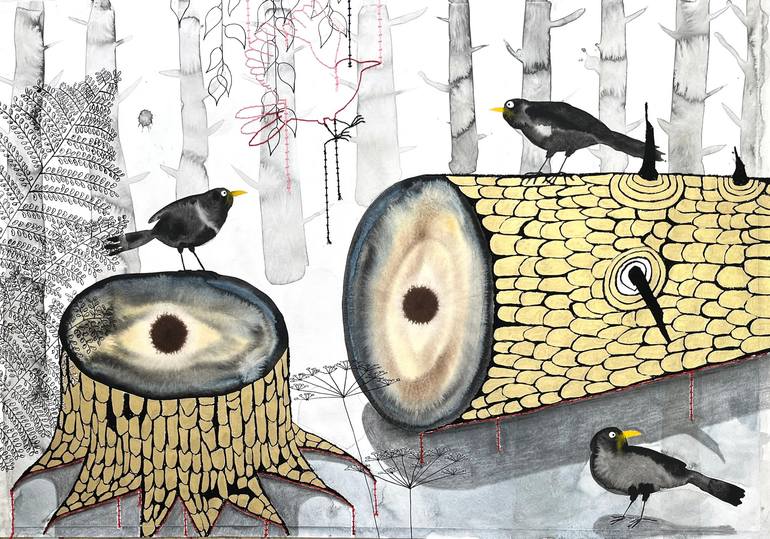 Nynke Kuipers is a multidisciplinary artist based in Amsterdam, the Netherlands. Her creative art encompasses drawings, paintings, comics, and graphic novels, utilizing a diverse array of materials such as crayons, chalk, watercolor, acrylic, thread, and collage, often combined to produce richly textured, mixed-media works. Kuipers's art is characterized by its playful and humorous tone, frequently exploring themes of nature, animals, and the human psyche. She employs a variety of techniques, including finger painting, to establish a direct connection with her materials, allowing for an intimate and expressive artistic process. Her portfolio includes notable works such as "The Blackbird and the Wolves," a piece that combines watercolor, pencil, embroidery, and lino-print to depict a nuanced interaction between wildlife and environment . Another significant work, "The Arrival of the Wolves," reflects on the reintroduction of wolves to the Veluwe region, blending acrylic and thread on linen to convey the complex emotions surrounding this ecological development. Through her art, Kuipers invites viewers into a world where the boundaries between reality and imagination blur, encouraging a deeper contemplation of the natural world and our place within it.