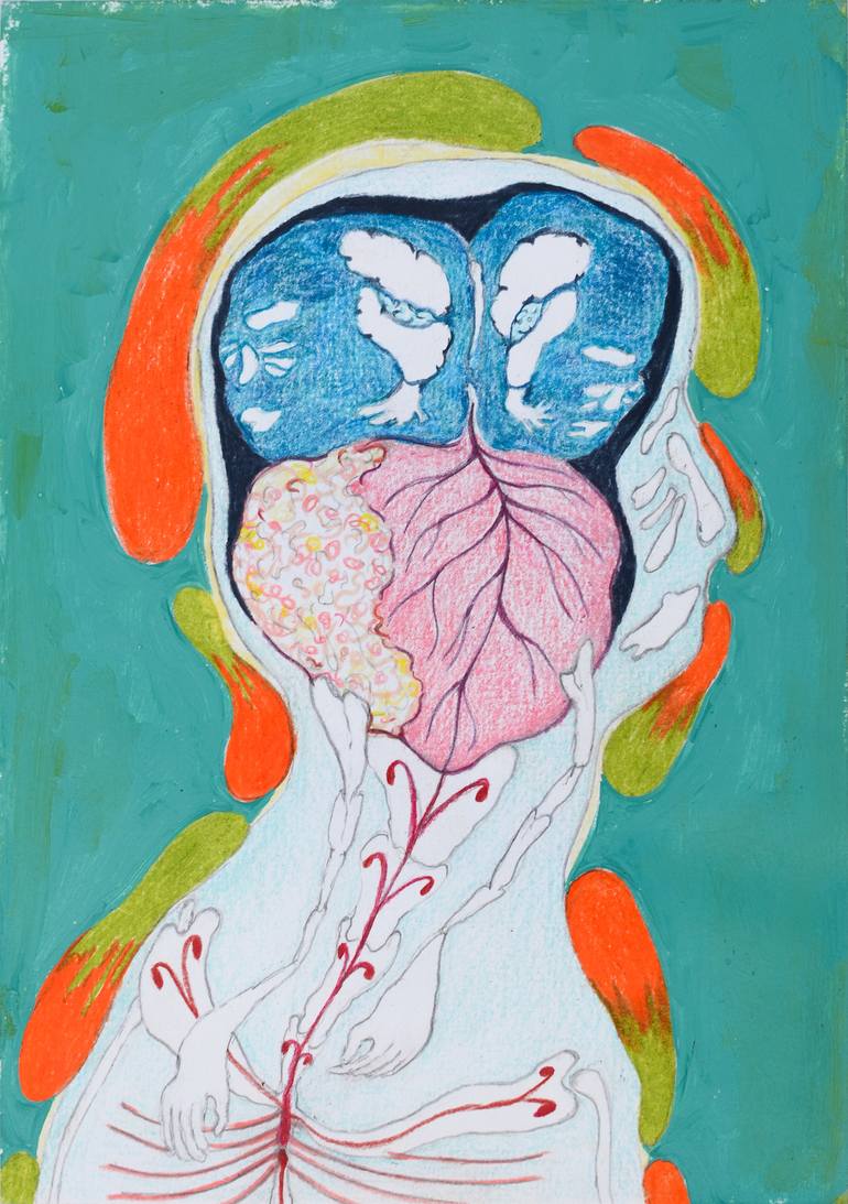 Drawing is for me like storytelling in images.We are all struggling to find meaning in our lifes and I like to investigate how we do that. A central theme in my work is being 'comfortably numb', pleasantly numb. How do you live your life? Open, touchable, vulnerable, on the border of the unpleasant or quiet, easy and comfortable but withdrawn and hidden? Caring and contact versus carelessness and loneliness. Comfort versus pain. Living versus sleeping. What is "real" and how much life can we bear? I love drawing while it is a non-pretentious media. It gives me the possibility to experiment with a lot of materials and mix them together, like pencils, gouache, inks, markers etc. My work is colorfull, a bit fairytale-like but mostly with a bit darker twist in it. Lately I discovered Acrylic-Gouache. It had the touch and feel of matte and opaque from gouache but when it is dry it is waterproof and that allows me to work in multiple bright layers. I'm really in love with this paint! All my paintings and drawing will be shipped unframed because of shipping cost. (Even if you see them framed in pictures of them in exhibitions!) If you like a painting/drawing framed please contact me.