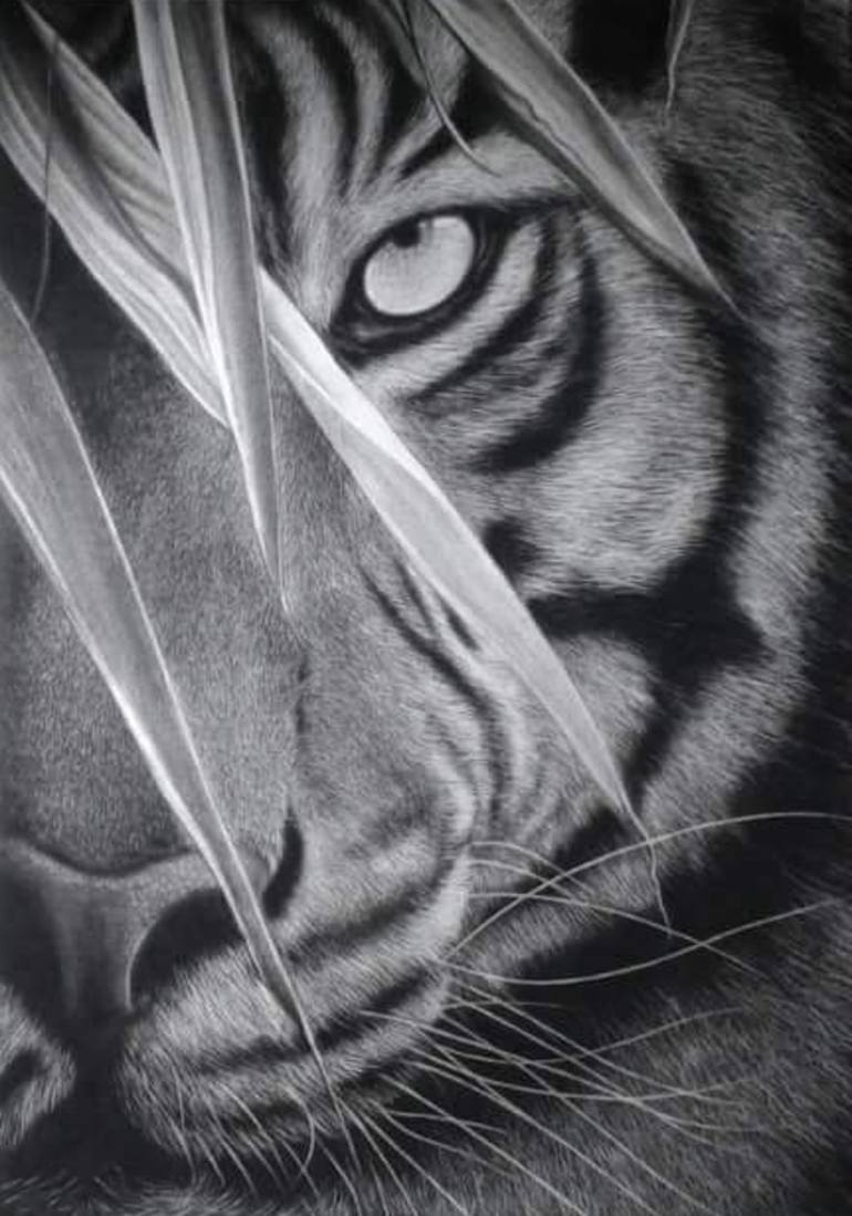 Inspired by the stare of the tiger. Calm, mysterious. The artwork is A3 paper size (29.7×42)cm, it will be shipped rolled, securely inside a shipping tube.