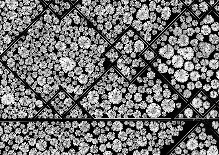This artwork was born from a stack of logs photographed during a summer in Moldova, transformed into an orderly yet vibrant composition rich in meaning. The diamonds that rhythmically define the structure recall traditional Romanian symbolism, where they represent faith, constancy, and harmony, valu...