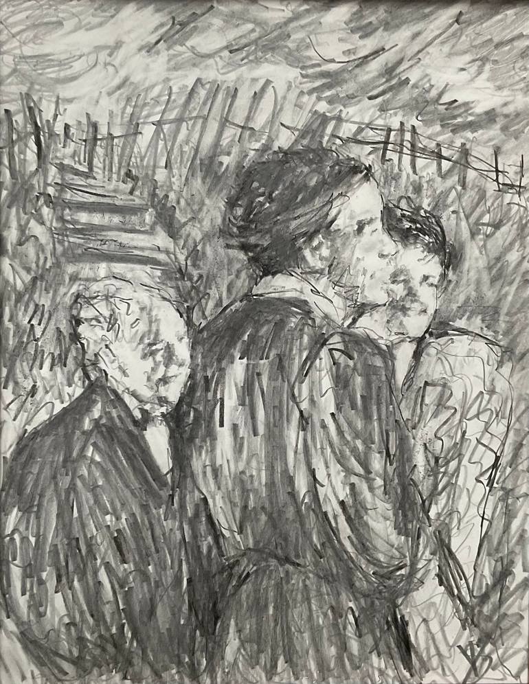 14x11 inch expressionistic figurative pencil drawing - a windy stormy day and a sudden desire to see the sea.