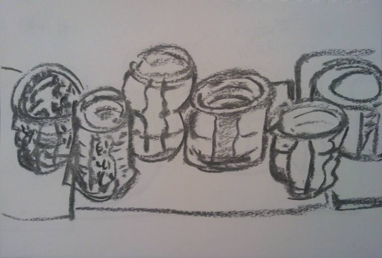 Transient white/white pots No 16 (Drawn in 5 minutes) Thick Charcoal stick 23/1/18 A4