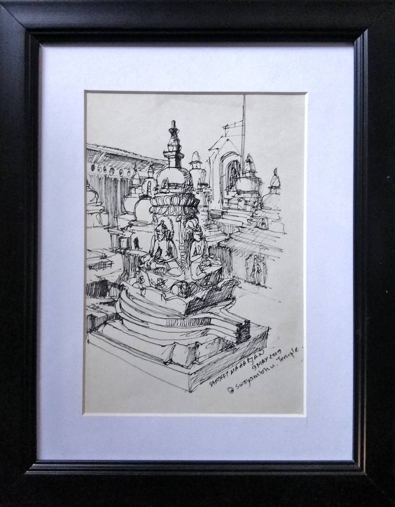Chaitya, a small stupa around Swyambunath Temple done with pen and ink