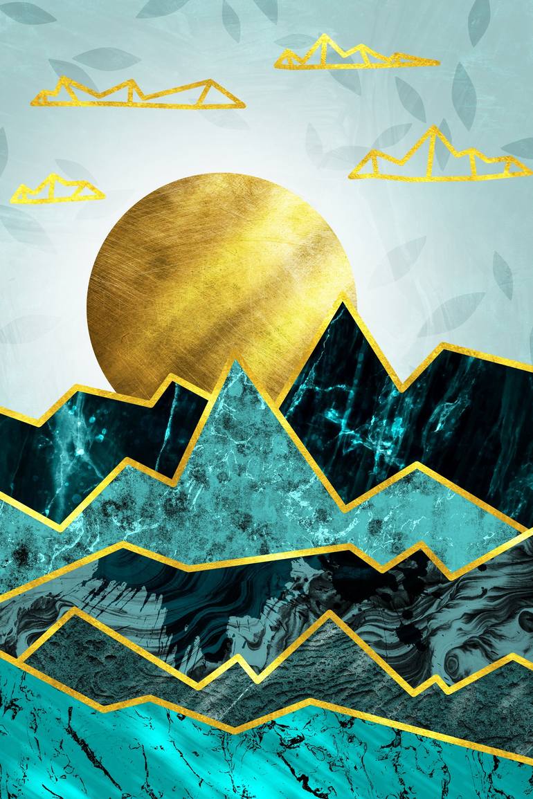 Design of a marble geometric landscape with turquoise and green tones.
