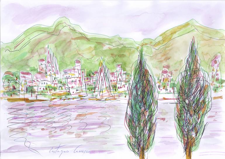 This landscape is characterized by being truly extraordinary in the way it is made; the watercolors and colored pens marry very well and make this artistic work an excellent sample of very original lines and colors with completely new shapes and elements of the landscape and a very marked and origin...